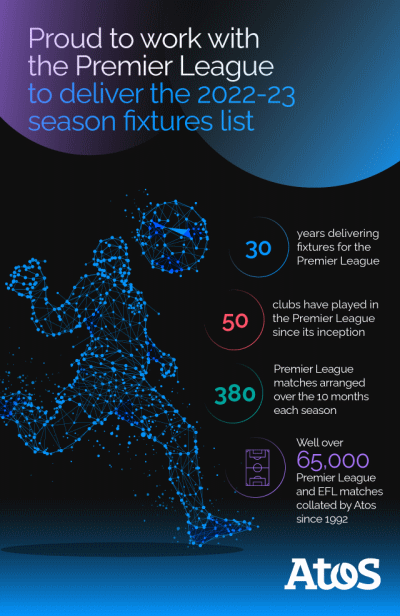 Atos warmly welcomes the big reveal of the Premier League 2022-23 season fixture list which it has helped to produce – a role the company has played with pride every year since the introduction of the League in 1992.