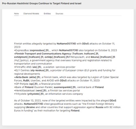 Figure 10 NoName057(16) notes about attacks on Finnish entities in October 2023