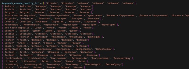 Figure 4 Piece of the keyword list that has been used