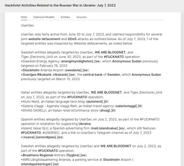 Figure 7 UserSec in cooperation with other groups carried attacks on Italian, Ukrainian, and Swedish entities in July 2023