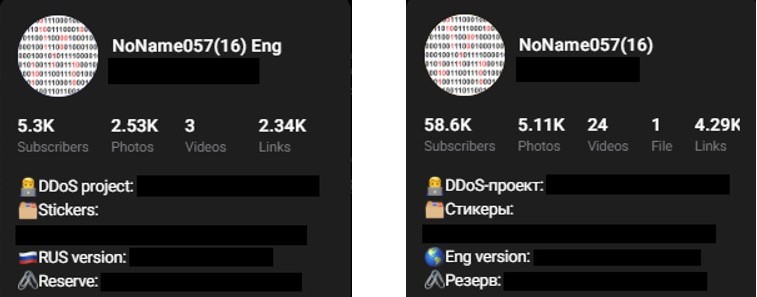 Figure 8 NoName057(16)eng and NoName057(16) Telegram channels information panes